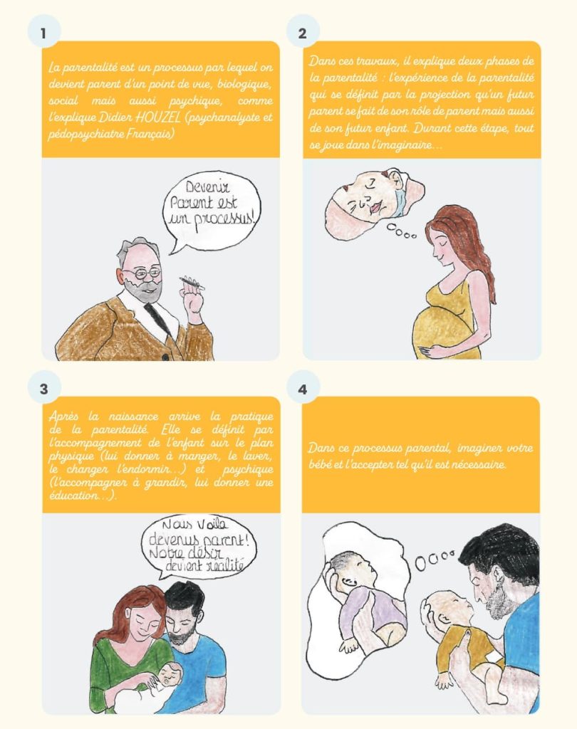 Devenir parent est un processus qui débute pendant la grossesse, où l’on projette son rôle et comment l’enfant sera. L’enfant réel diffère souvent de l’enfant imaginé, mais c’est essentiel pour son développement. Nous devenons parent peu à peu en aidant l’enfant à grandir tel qu’il est.