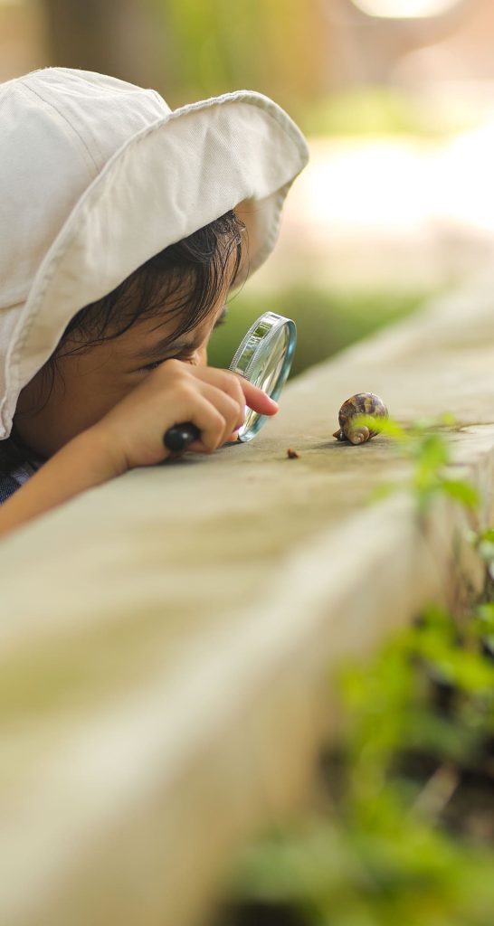 Observer une plante, arroser un jardin, nourrir un animal ou simplement remarquer un insecte amène l’enfant à développer de